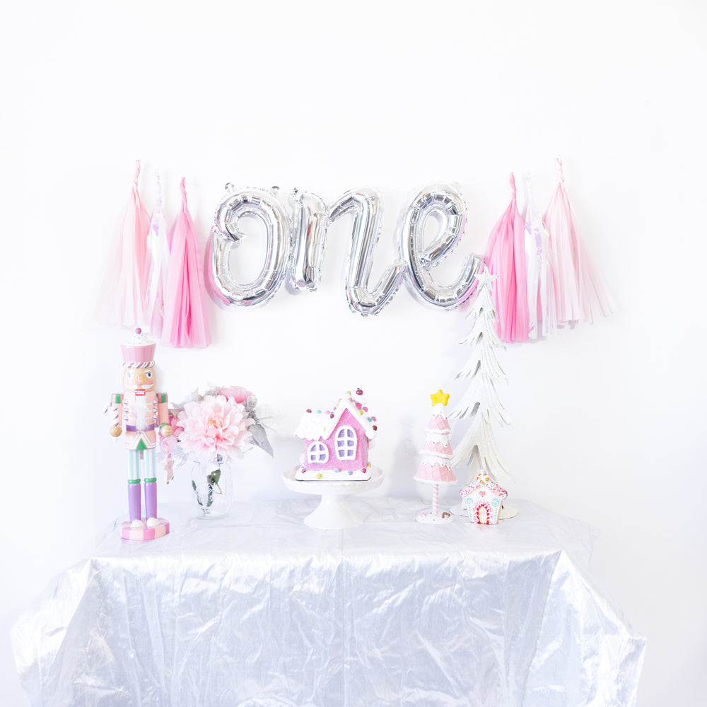 ONE single air fill script letters in silver or gold. Perfect for any Winter Onederland or first birthday bash! Available with or without paper tassels in your chosen colors.