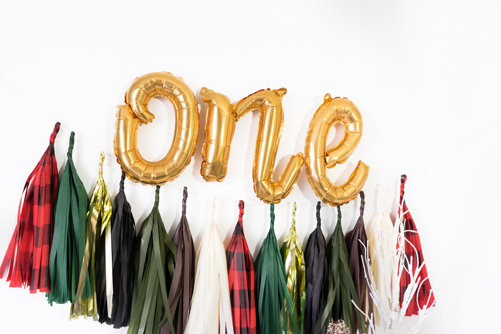Celebrate your little lumberjack's birthday with this One Script Air Fill Balloon Banner. Available with our without Gold Woodland paper tassels contain a lumberjack blend of buffalo plaid, greens, black, brown, vanilla and gold paper tassels. If you'd prefer custom color tassels, please message me prior to your order and we can make it happen.